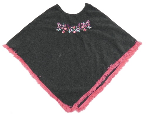 Šedo-růžové fleecové pončo s květy a třásněmi Dopodopo