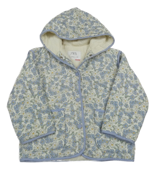 Smetanová květovaná zateplená propínací mikina s kapucí Zara