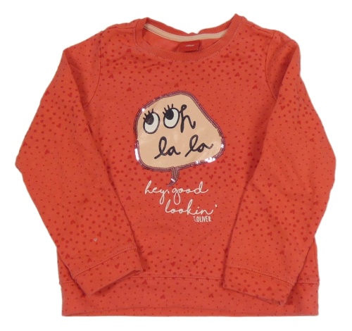 Jahodová puntíkatá mikina s nápisy a flitry S. Oliver