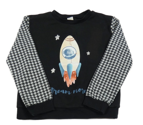 Černo-bílá mikina s raketou a vzorovanými úpletovými rukávy LC WaIKIKI