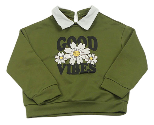 Khaki mikina s květy a nápisy a bílým límečkem SHEIN