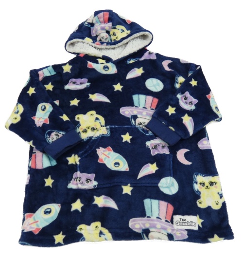 Tmavomodrá plyšová oversize mikina s vesmírem a kočičkami a kapucí Primark