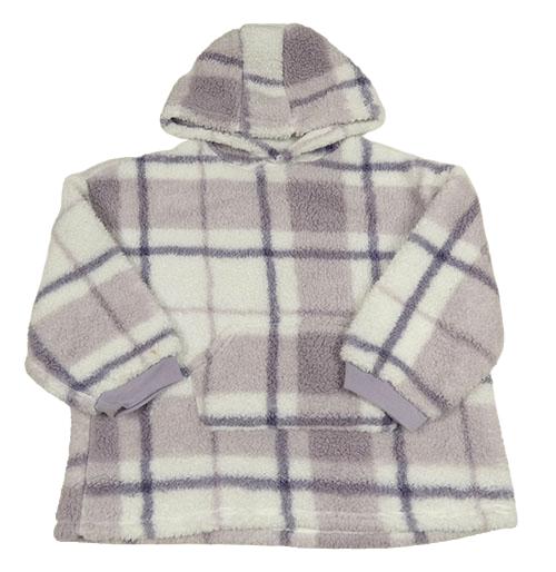 Bílo-lila kostkovaná huňatá oversize mikina s kapucí Primark