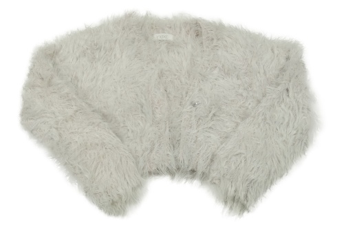 Bílo-světlerůžové chlupaté svetrové bolerko Next
