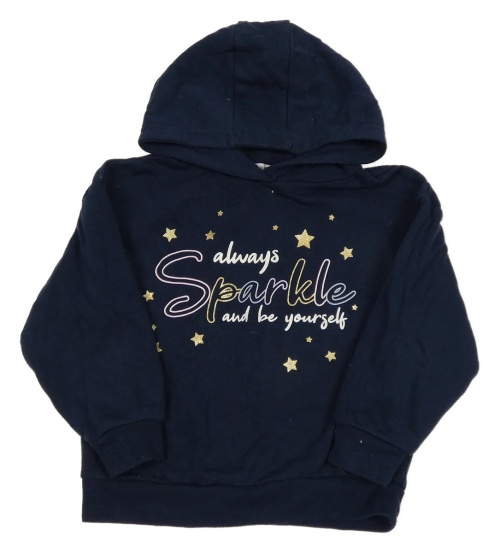 Tmavomodrá mikina s nápisy a zlatými hvězdičkami a kapucí PRIMARK