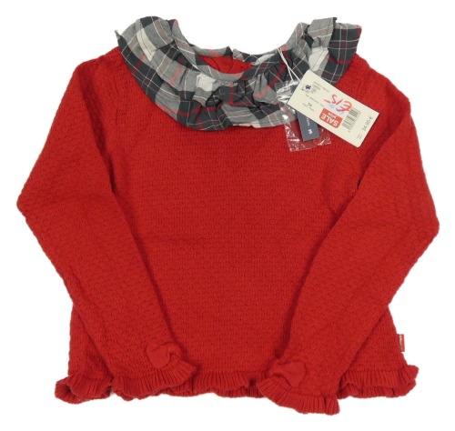 Nové - červený lehký svetr s šedým kostkovaným límečkem