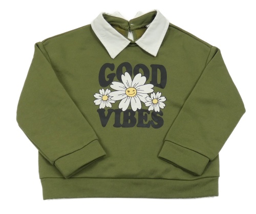 Khaki mikina s kopretinami a nápisy a límečkem SHEIN