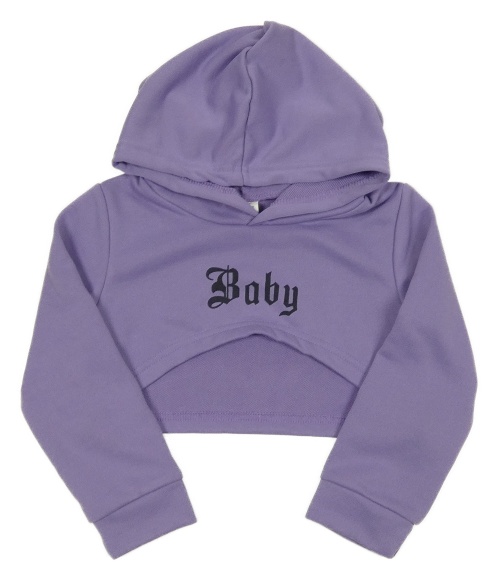 Fialové bolérko s nápisem a kapucí
