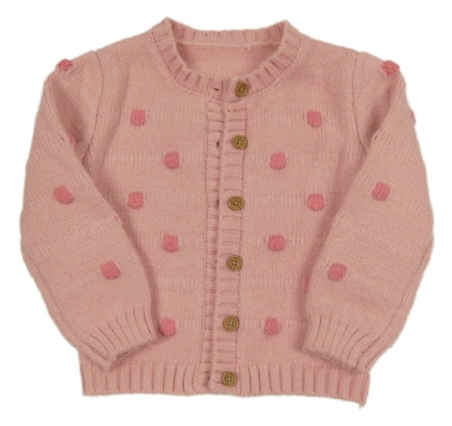 Světlerůžový propínací svetr s 3D puntíky Nutmeg