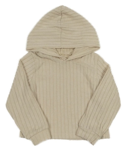 Smetanová žebrovaná úpletová crop mikina s kapucí