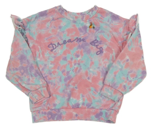 Růžovo-světlemodro-fialová batikovaná mikina s nápisem a ptáčkem Primark