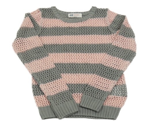 Šedo-růžový pruhovaný ažurový svetr H&M