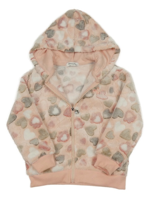 Růžová chlupatá propínací mikina se srdíčky a kapucí