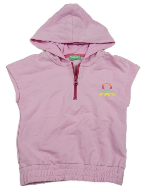 Světlerůžová tepláková vesta s logem a kapucí Benetton