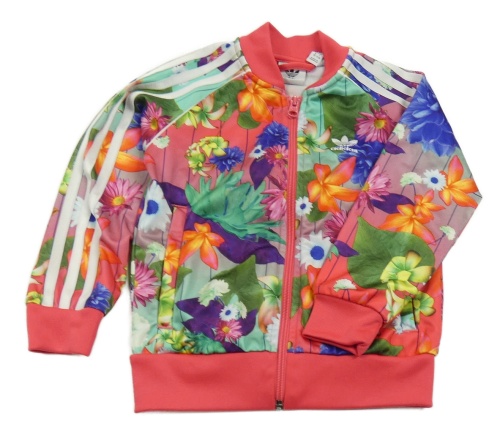 Růžovo-barevná květovaná sportovní propínací mikina Adidas