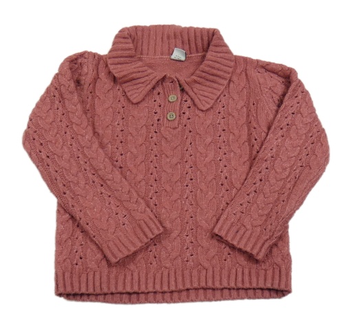 Tamvorůžový perforovaný vlněný svetr s límečkem Tu