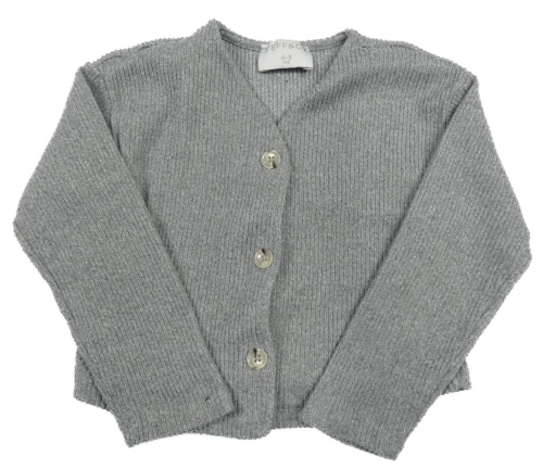 Šedý žebrovaný propínací crop svetr Jeff&Co.
