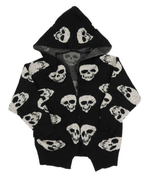 Černý svetrový cardigan s lebkami a kapucí Shein
