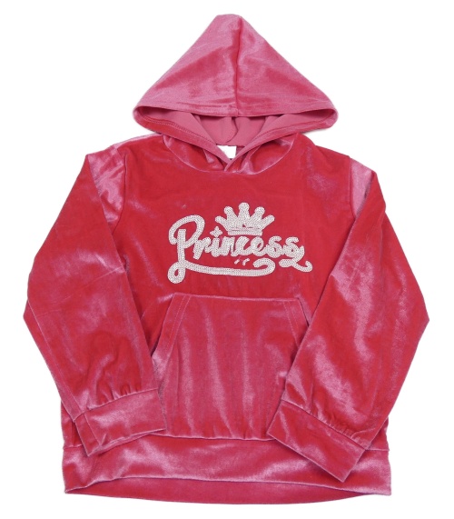 Růžová sametová mikina s nápisem z kamínků a kapucí