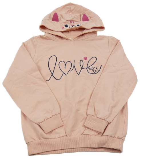 Světlerůžová mikina s nápisem a kapucí s kočkou