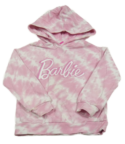 Růžovo-bílá batikovaná mikina s Barbie a kapucí