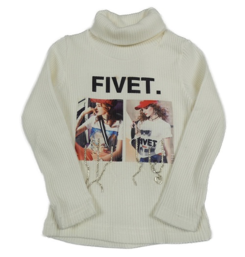 Smetanový žebrovaný svetrový rolák s dívkami