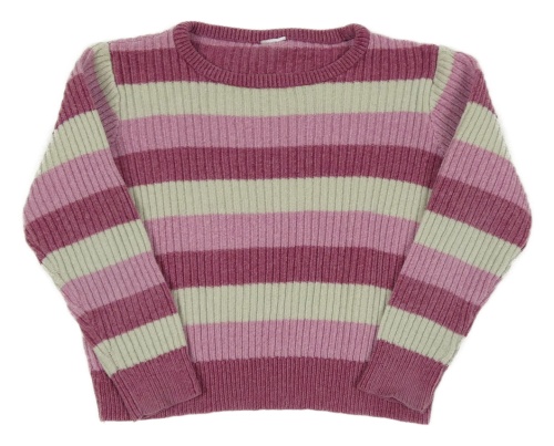 Růžovo-vínovo-světlešedý pruhovaný žinylkový oversize svetr