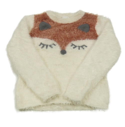Smetanovo-hnědý chlupatý svetr s liškou C&A