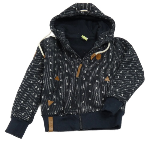 Tmavomodrá puntíkatá propínací mikina s kotvami a kapucí
