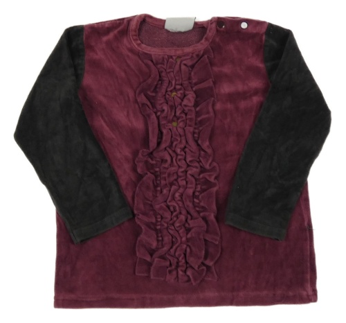 Růžovo-tmavošedá sametová mikina s volánky