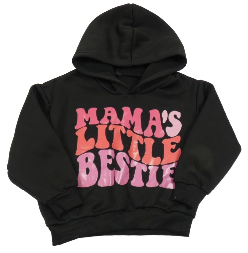 Černá mikina s růžovými nápisy a kapucí
