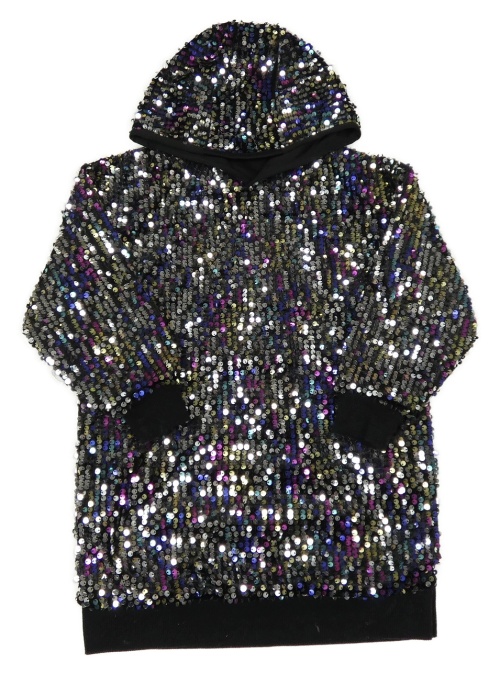 Černo-barevná šatová mikina s flitry a kapucí Dunnes Stores
