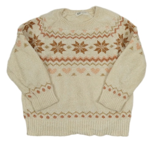 Světlebéžový melírovaný žinylkový svetr s vločkami a srdíčky a vzorem H&M