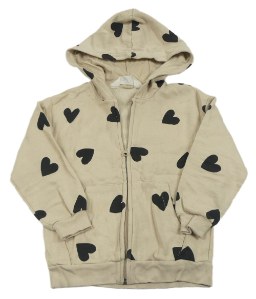 Béžová propínací mikina se srdíčky a kapucí H&M