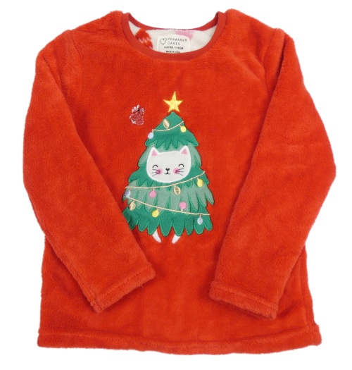Červená chlupatá mikina s vánočním stromečkem Primark