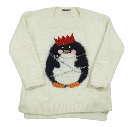Smetanový chlupatý svetr s tučňákem s kamínky Matalan