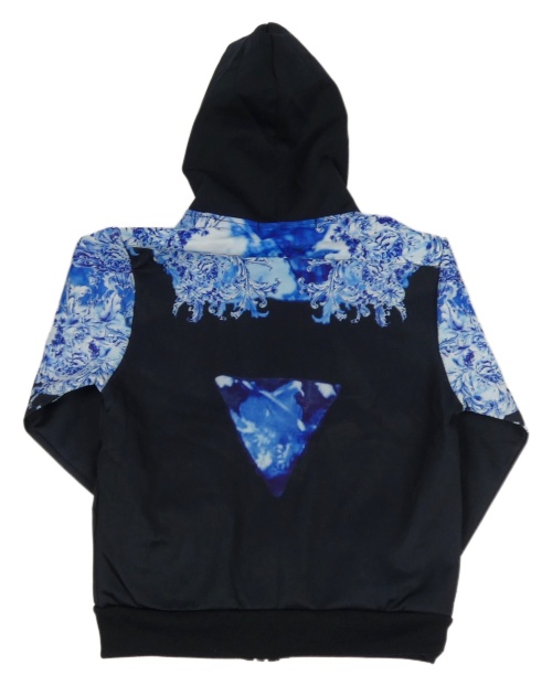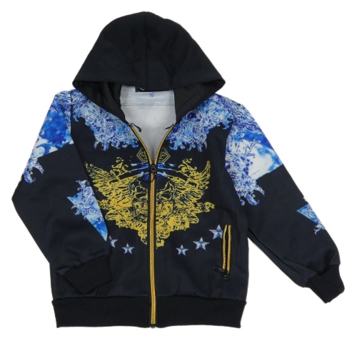 Tmavomodrá propínací sportovní mikina se vzorem a kapucí