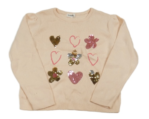 Broskvový svetr se srdíčky a květy a flitry ORCHESTRA