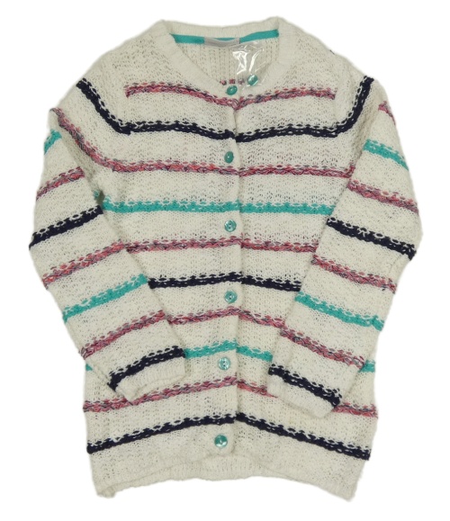 Nové - Bílo-modro-růžovo-zelený pruhovaný propínací svetr Topolino