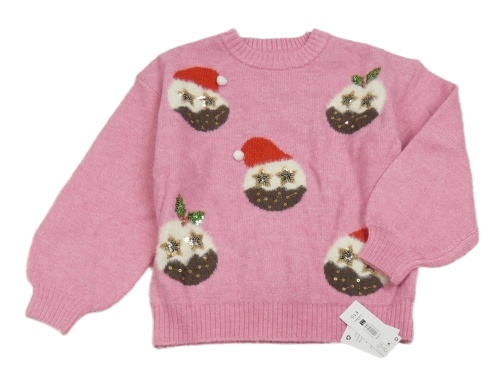 Nový - růžový melírovaný oversize svetr s vánočními pudingy s flitry St. Bernard