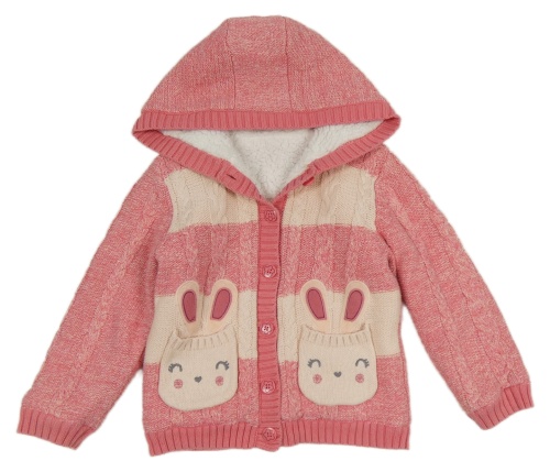 Světlerůžovo-smetanový propínací zateplený svetr se zajíčky a kapucí Nutmeg