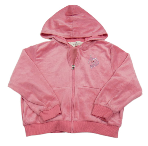 Růžová sametová propínací mikina s koníkem z kamínků a kapucí H&M