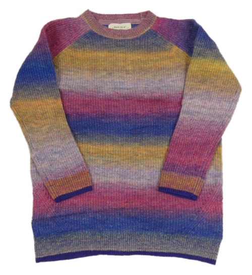 Růžovo-modro-okrový svetr