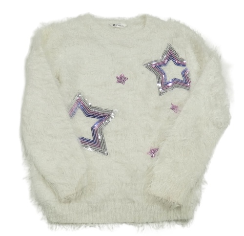Bílý chlupatý svetr s hvězdičkami z flitrů V by Very