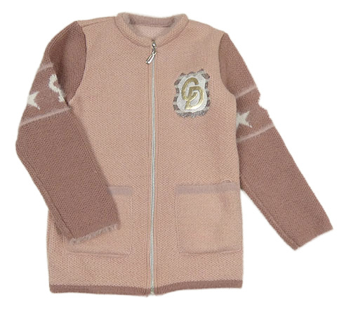 Starorůžovo-starorůžovohnědý pletený propínací svetr s písmenky
