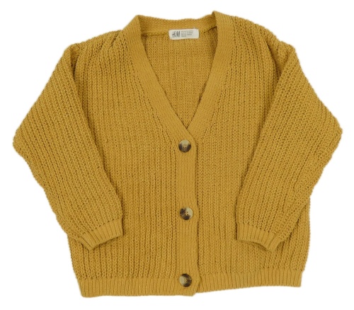 Hořčicový žinylkový propínací svetr H&M