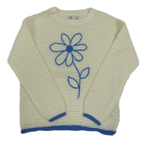 Smetanovo-modrý ažurový svetr s kytičkou PRIMARK