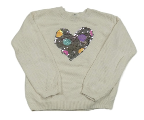 Bílý svetr se srdíčkem z překlápěcích flitrů H&M