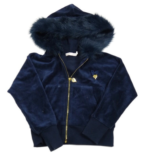 Tmavomodrá sametová propínací mikina s kapucí s kožešinou