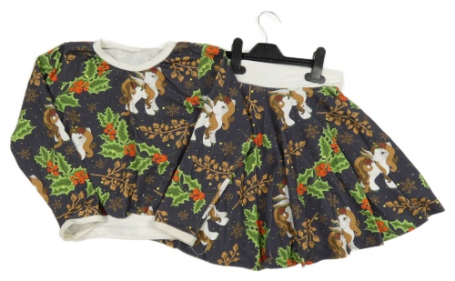Nové - 2set - Tmavomodrá lehká mikina s jmelím a jednorožci + sukně Dunnes Stores